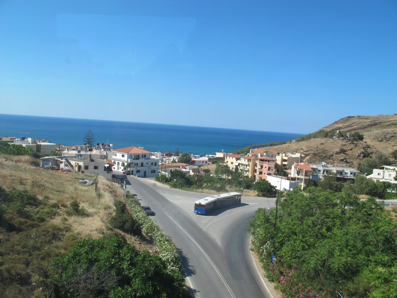 Onnekseni bongasin bussini ajoissa ja pääsin köröttelemään kohti Iraklionia, jonne matka kiertelevillä ja kaartelevilla vuoristoteillä vei yli tunnin. (Bussilipun hinta 7,60 euroa.)