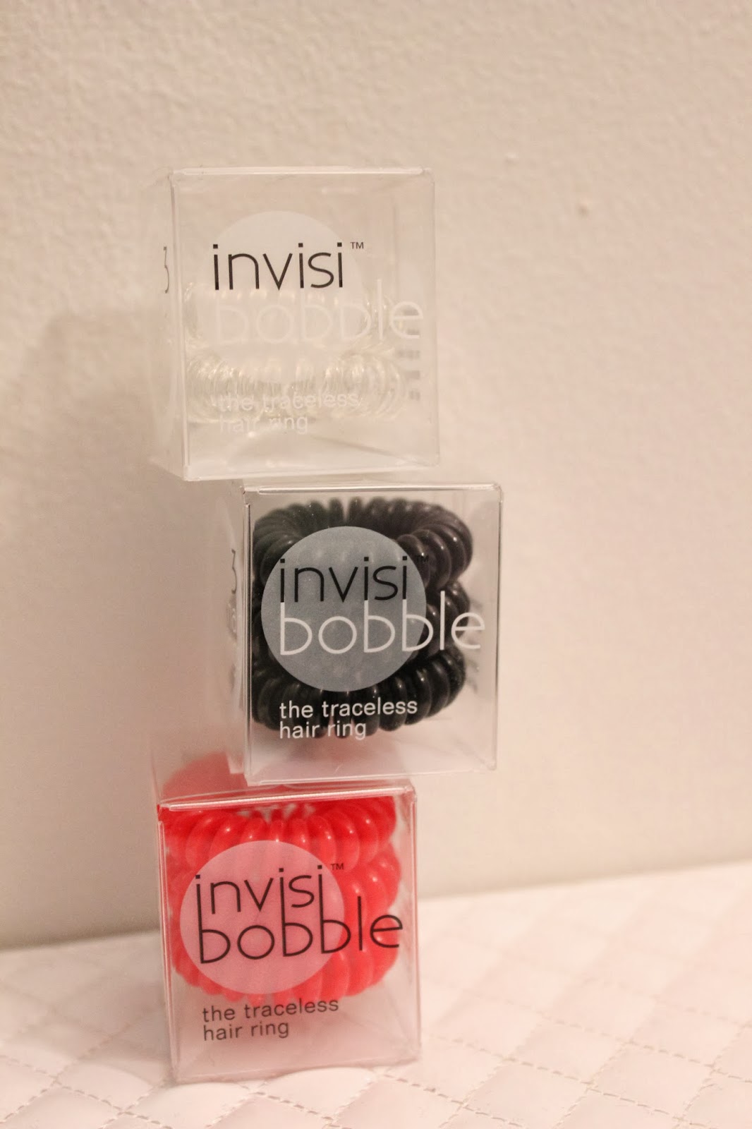 Ostin glitterin versioita joulun jälkeen, enkä oo sen jälkeen muita ponnareita päähäni laittanut. Mua kuitenkin ärsyttää, kun tuntuu et ne on tässä nyt jo lörpähtäny aika muodottomiks. Tilasinkin nyt testiks paketin ruskeita invisibobbleja, kun ne kuulemma pitää kuosinsa paremmin. On kyllä paras keksintö!