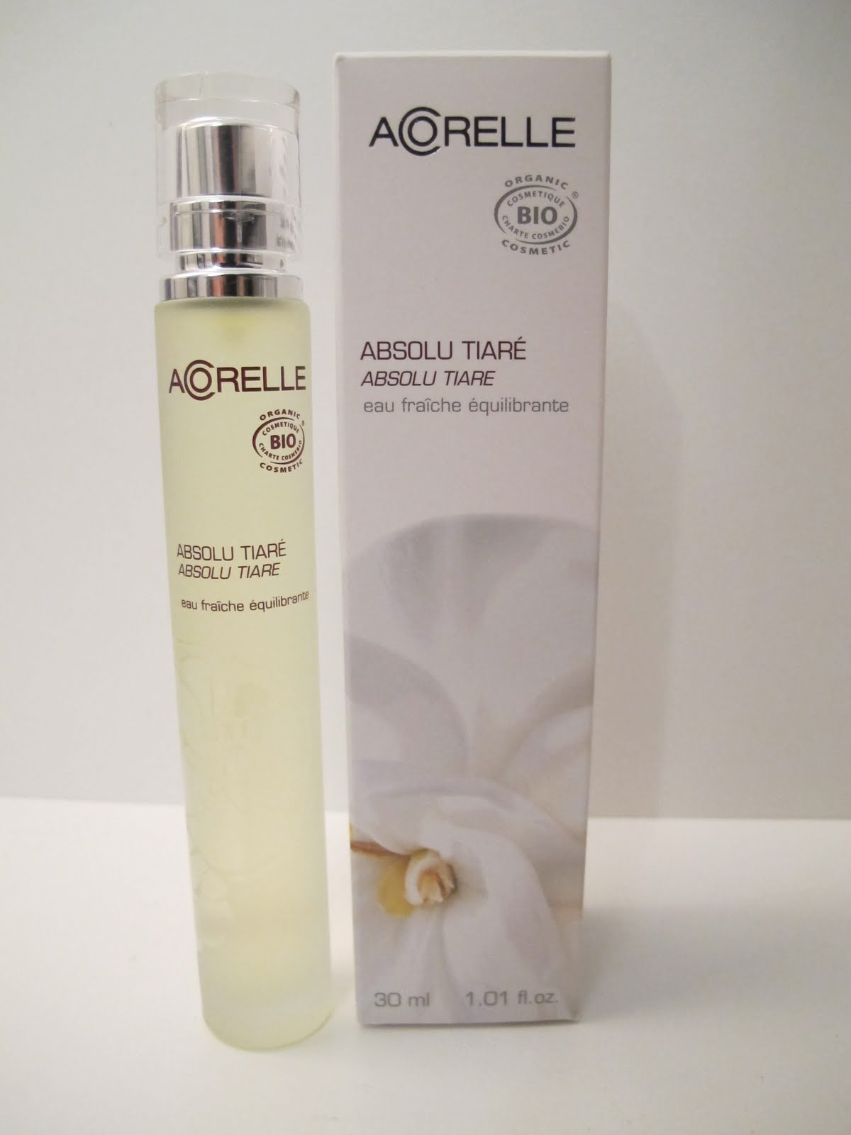Paitsi että tuoksut tuoksuvat ihanille, on niillä myös aromaterapeuttinen vaikutus. Sain itselleni tuoksujen maahantuojalta Ekovistalta Absolu Tiaré Eau Frachen, joka sisältää tasapainottavaa appelsiini- ja shiuöljyä.
