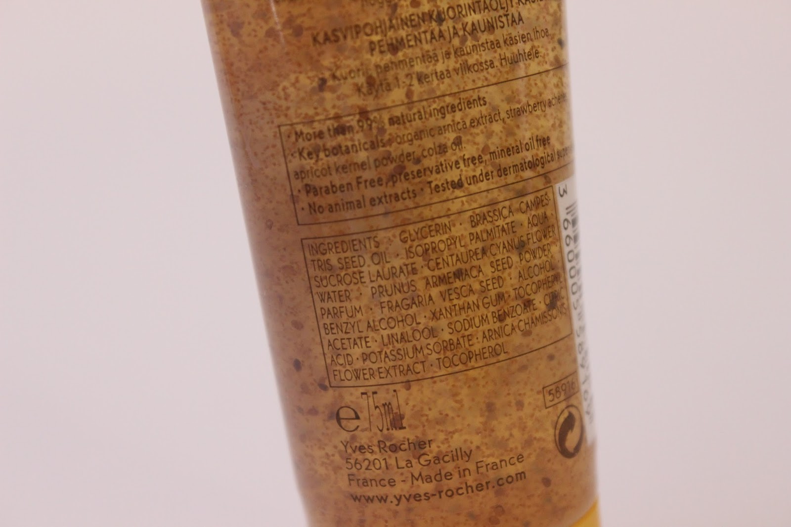 Tuotteen sisältämät mansikansiemenet kuorivat kädet hellävaraisesti mutta tehokkaasti pehmeiksi jättäen iholle miellyttävän sileän ja suorastaan silittelyyn pakottavan tunteen. Myönnän, että olen itse hieman laiska kuorimaan käsieni ihoa, mutta yritän muistaa pitää tuotetta lavuaarin lähettyvillä ja käyttää näin pahimpina kuivakausina ainakin kerran viikossa.