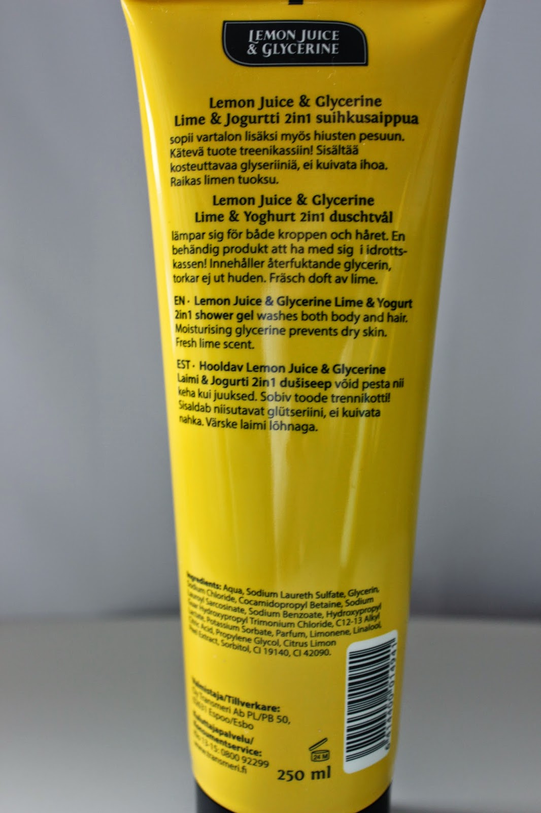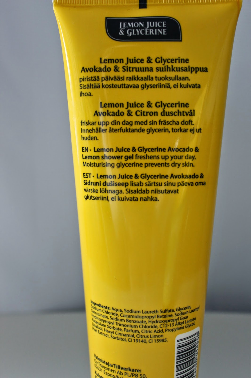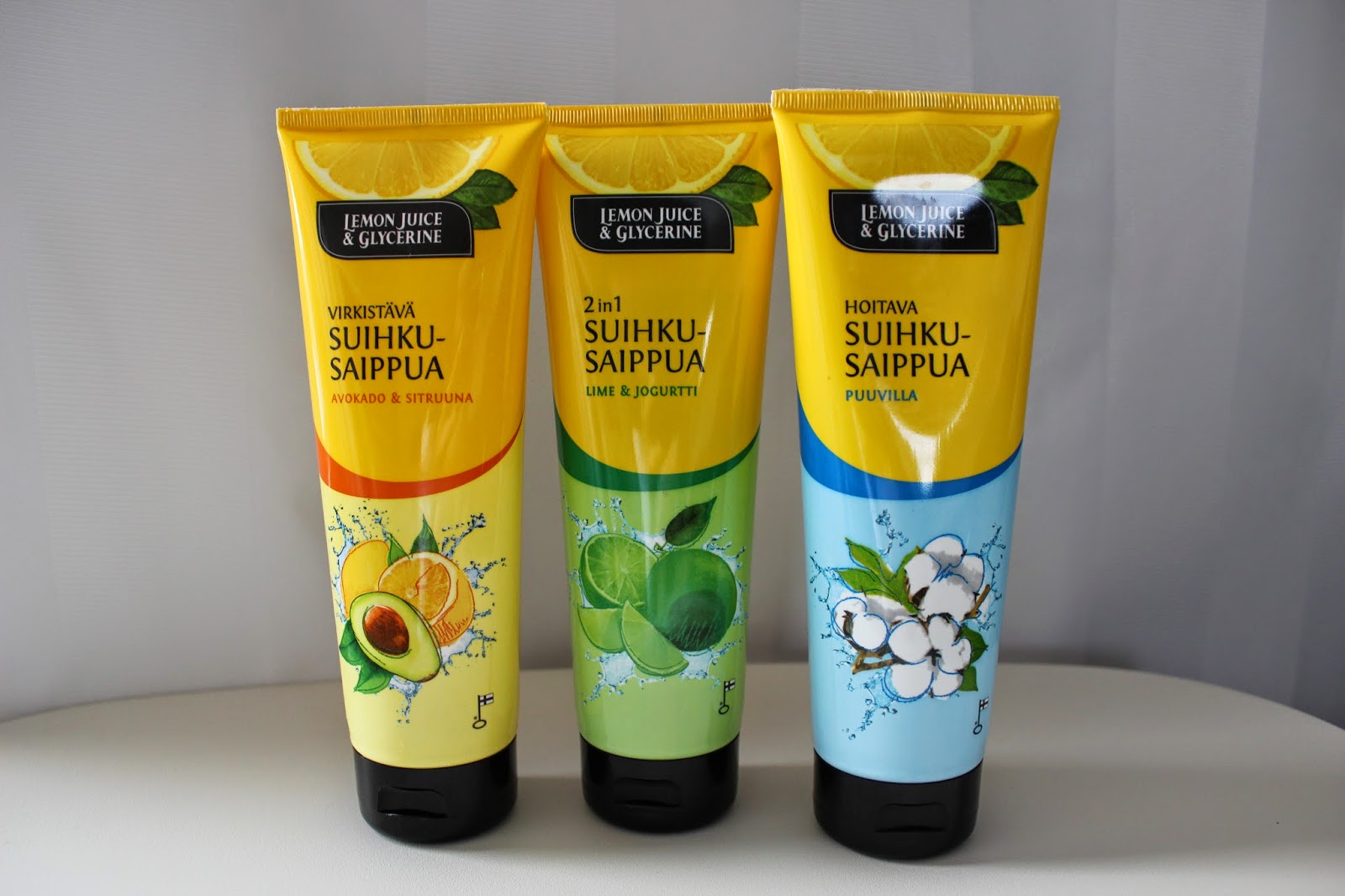 Sain kotimaisen käsivoiteistaan ja käsisaippuoistaan tutun Lemon juice & Glycerine -merkin uusia suihkusaippuoita blogin kautta kokeiltavikseni ja tutustuin niihin innolla -näiden suositushinta kun on vain 2,20 euroa!!!