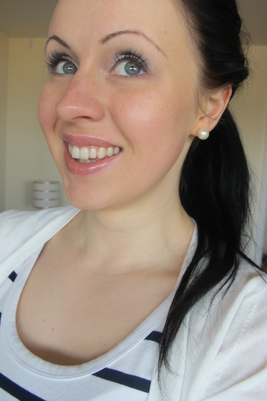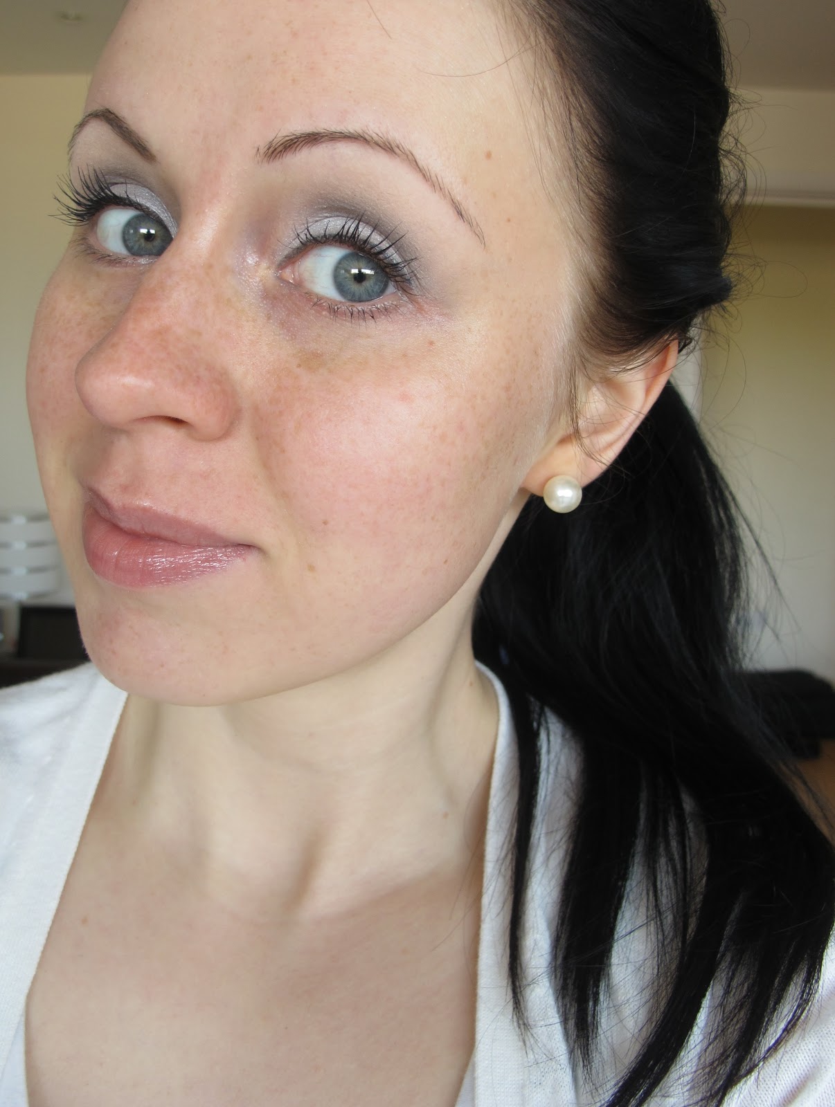 Lisäsin kuitenkin silmien alle Diorin Nude peiteainetta (sävy 001) ja puuteroin kasvot vielä MACin kivipuuterilla, minkä jälkeen lopputuloskin oli jo enemmän minun makuuni.