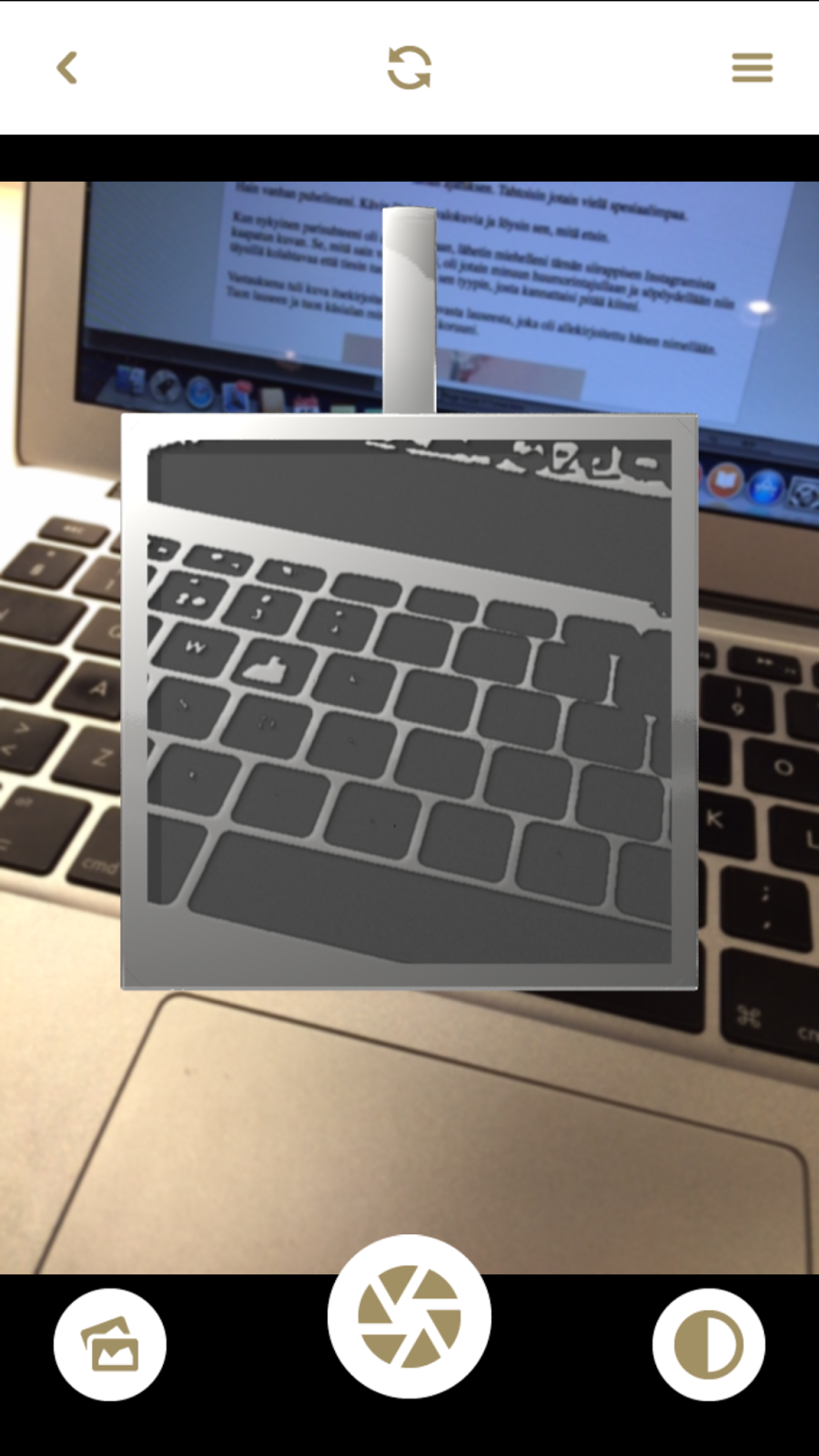 Editoin kuvaa, rajasin ja säädin kontrasteja ja sain siitä vihdoin sellaisen, että EYE Jewelry -applikaatio kykeni prosessoimaan sitä.