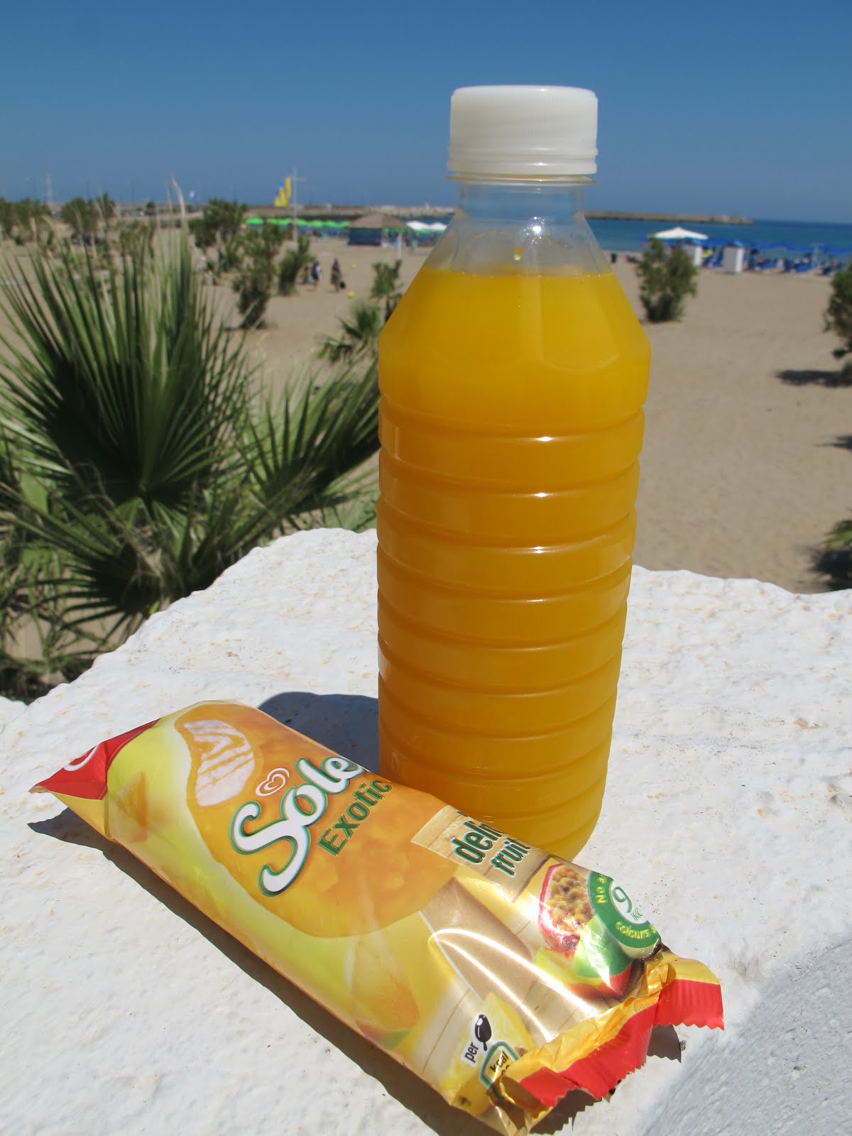 Matkalla pysähdyin nappaamaan aamiaiseksi viimekesänä Kreikan Haniassa ystäväni kanssa reissatessani löytämääni herkkua: vastapuristettua, pullotettua appelsiinimehua. Lisäksi aamu alkoi heti jäätelöllä.