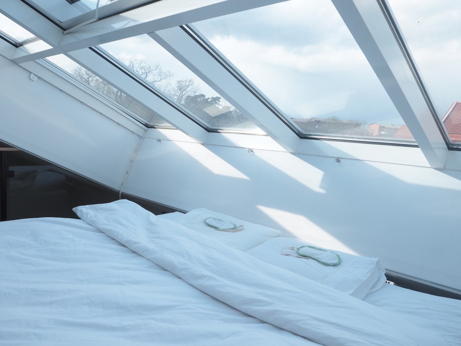 Bambusta valmistettu, pehmeän froteiselta näyttävä unimaski vaikutti niin lupaavalta, että ehdotin petikaverilleni sen kokeilua. Tuon yön jälkeen olemme molemmat adoptoineet maskit käyttöömme. Ruotsalainen käyttäjä koki maskin heti omakseen, suomalaiselta käyttäjältä siihen tottumiseen meni pari yötä. Nyt näihin pehmoisiin unenavittajiin ollaa kuitenkin ihastuttu tässä asunnossa ja tämän kattoikkunan alla niin, että niistä ei taideta luopua ennen talvea.