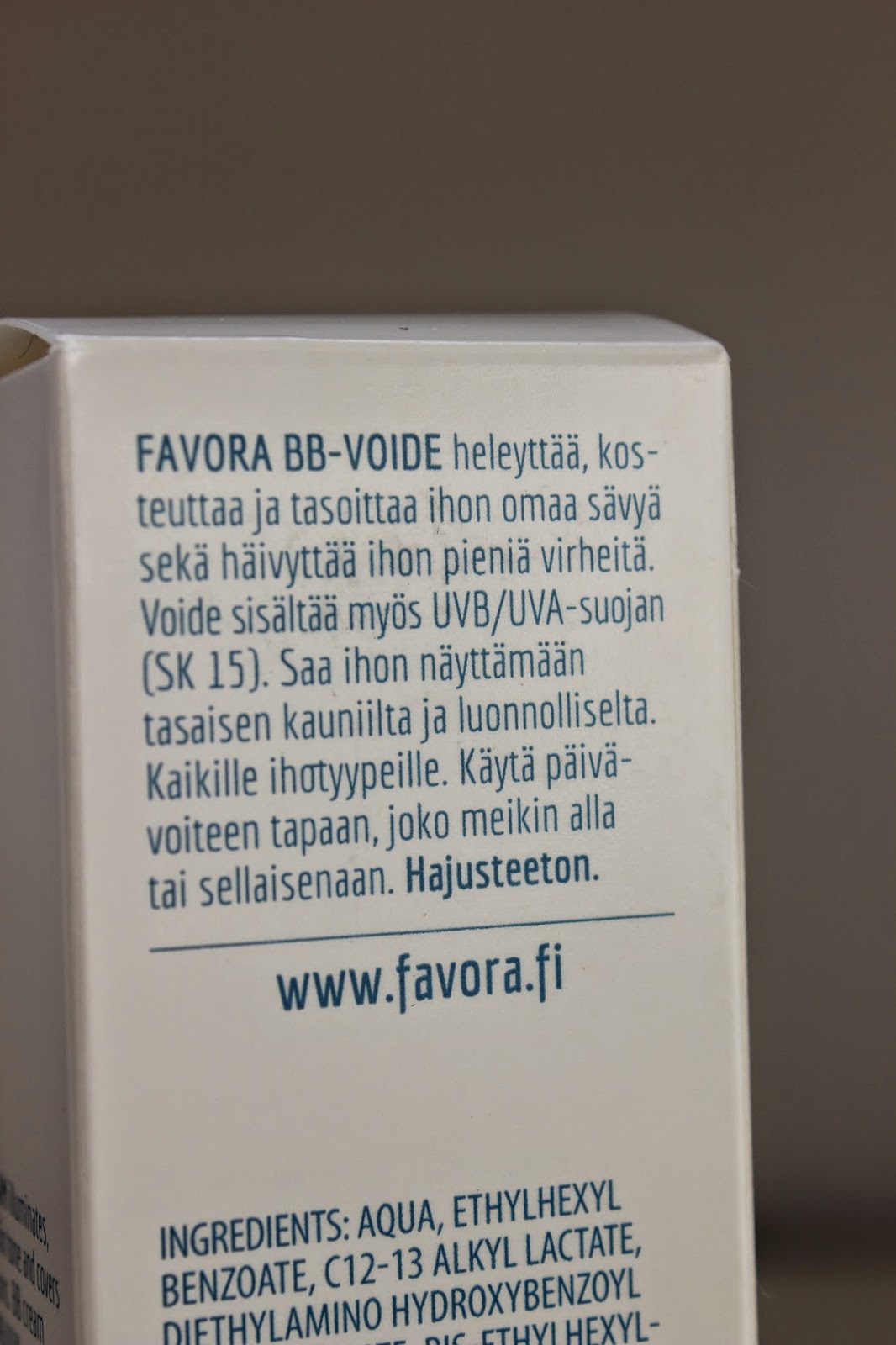 Käytän päivittäisessä ihon hoidossa Favoran tuotteita ja tottakai olin innoissani, kun markkinoille tuli myös BB voide. Sävy vain oli harmikseni itselleni ihan liian tumma.