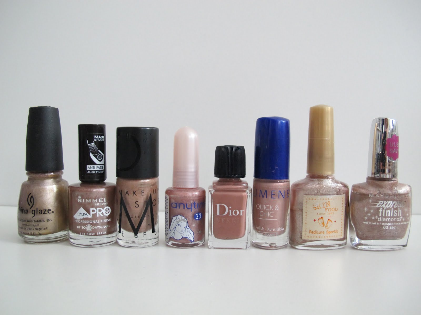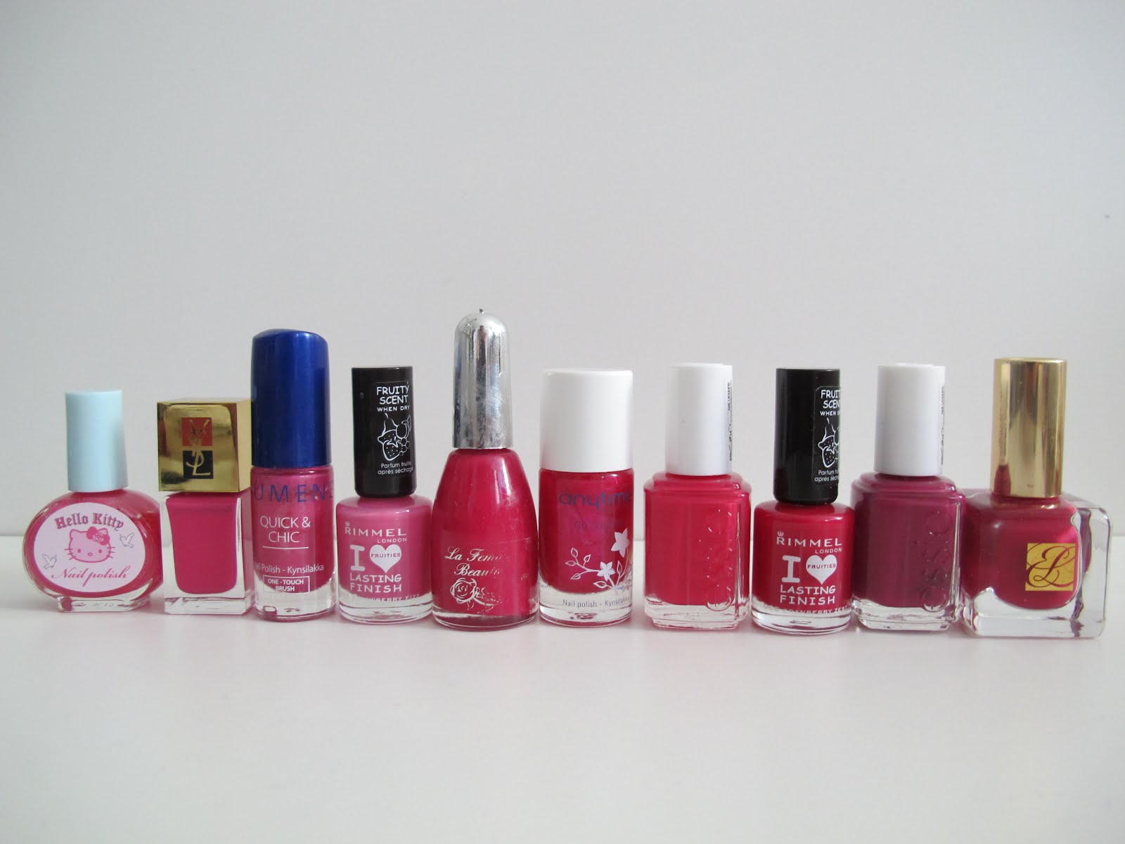 Olen ollut todella valmis luopumaan lähes kaikesta muusta omaisuudestani, mutta kynsilakat ovat herkkä kohtani. En vaan kykene luopumaan niistä! Värit ovat toinen toistaan ihanempia ja vaikka joku kuinka sanoisi, että nuo kymmenen pinkkiä ovat aivan samanlaisia keskenään, eivät ne käytössä silti ole. Tai vaikka kuka jatkaisi siihen, ettei kukaan nyt ainakaan tarvitse noin montaa erilaista kullan sävyä niin olisin silti erimieltä.