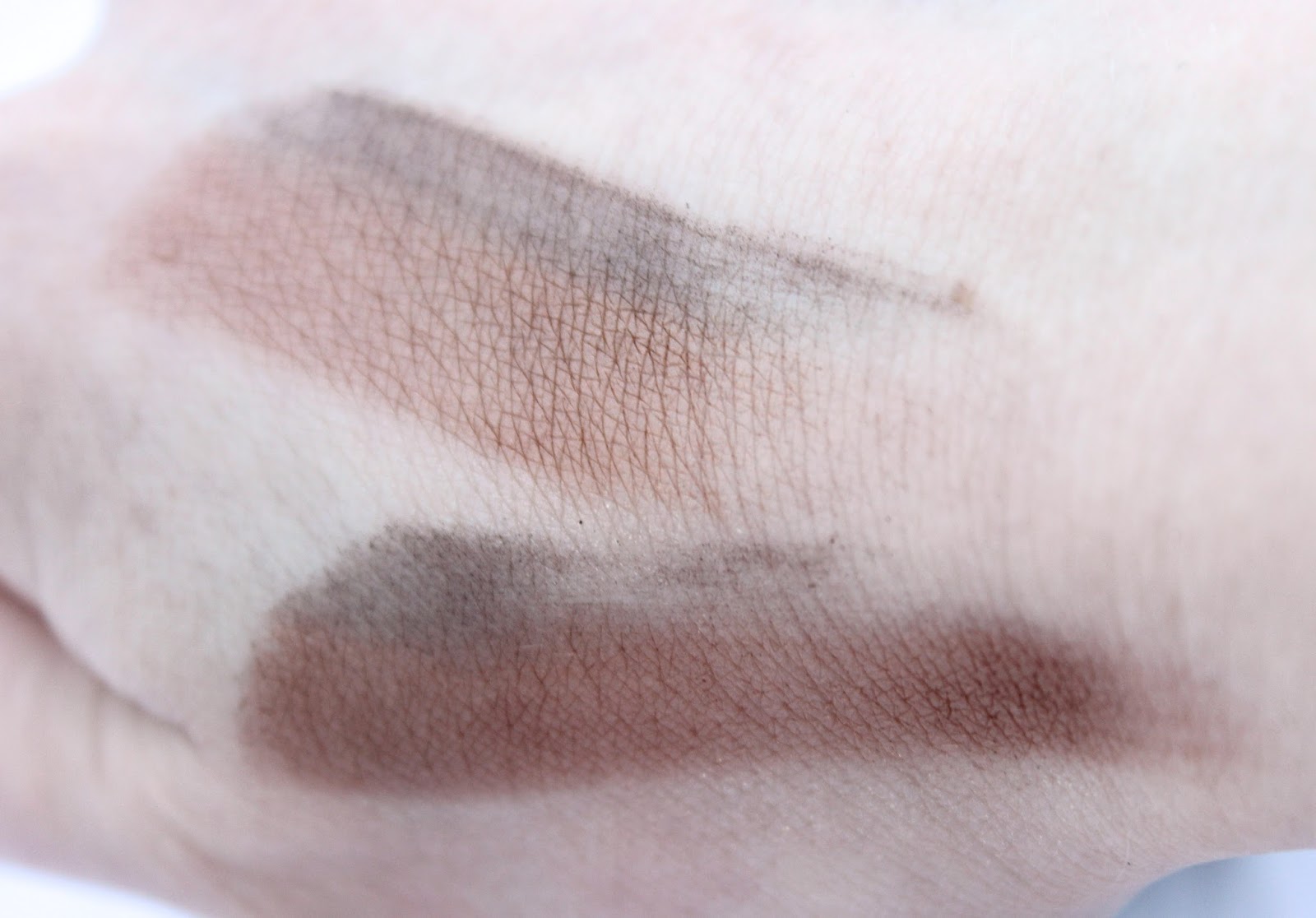 Harjoittelin parit vedot kädenselkääni todeten lopulta, että vaaleinta sävyä on näköjään ihan mahdoton yrittää saada applikaattoriin tarpeeksi, jotta sen voisi edes saada iholla erottumaan.
