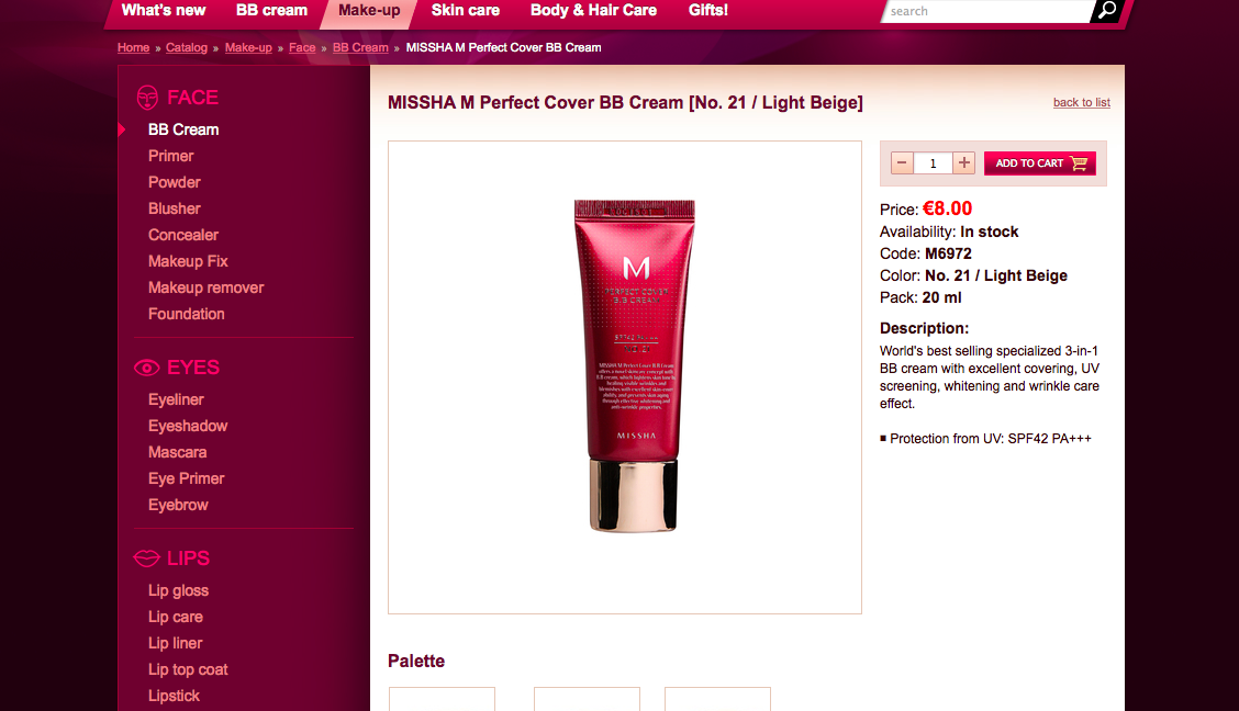 Saahan niitä kätevästi netistäkin, mutta nyt kun niillä on näinkin lähellä maahantuoja tarkoittaa tämä myös sitä, että tuotteet on täytynyt todeta sisällöltään myös EU:n lainsäädännön kriteerit täyttäviksi. Monilla nimittäin kynnys Aasiasta Misshan tilaamiselle ei ole ollut pelkästään se, että kaupankäynti sinne asti olisi pelottavaksi koettu juttu vaan myös se, ettei ole välttämättä ollut varma, löytyykö tuotteista vaikkapa sellaisia ainesosia, joita meillä EU:ssa ei sallita.