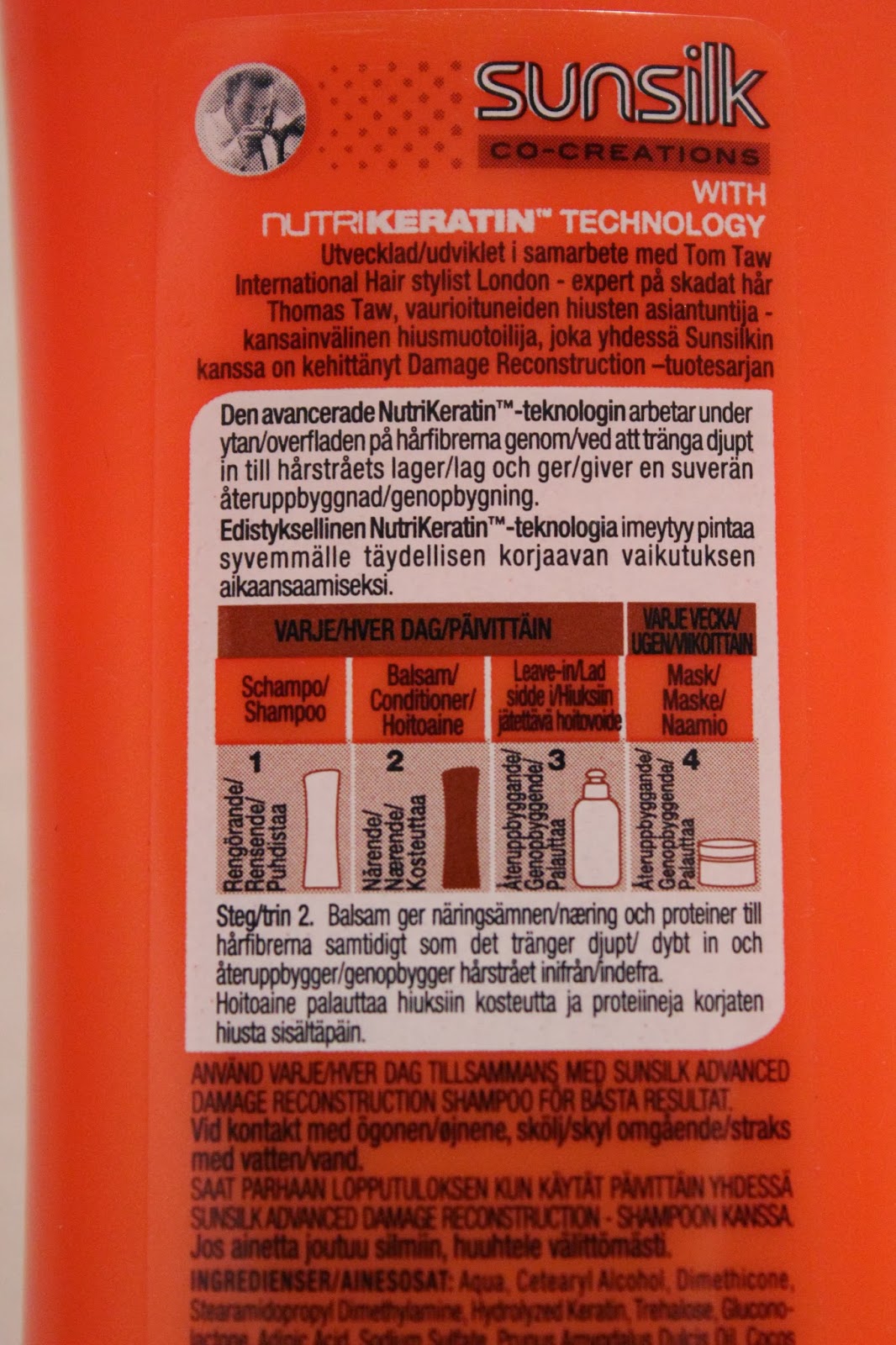Tarina alkoi siitä, kun tarvitsin nopeavaikutteisen ja hiuksia tehokkaasti siloittavan pikahoitoaineen. Koska ihmiset hakevat hoitoaineeltaan nimenomaan siloitusta, ovat kaupallisimmat hoitoaineet hiuksia silikonien avulla tehokkaasti siloittavia ja takkuja avaavia ja juuri sellaista minäkin nyt hain. Välittömästi hyvältä tuntuvaa lopputulosta on usein helpointa hakea isoilta massabrändeiltä ja päätin itse kääntyä huvikseni Sun Silkin puoleen.