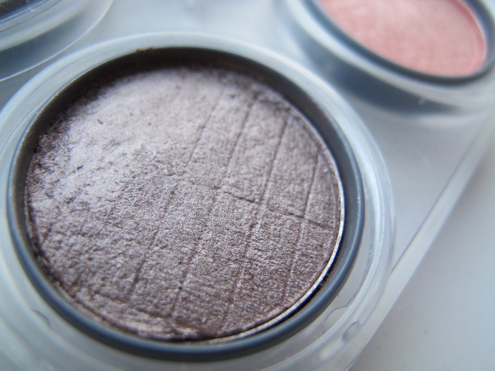 Tässä taupessa sävyssä tykkäsin suuresti sen monipuolisuudesta, sillä Grimasin luomivärejä voi käyttää niin kuivalla kuin kosteallakin siveltimellä ja varisinkin näistä helmiäissäyistä tulee upean metallinhohtoisia kostealla applikaattorilla levitettyinä.