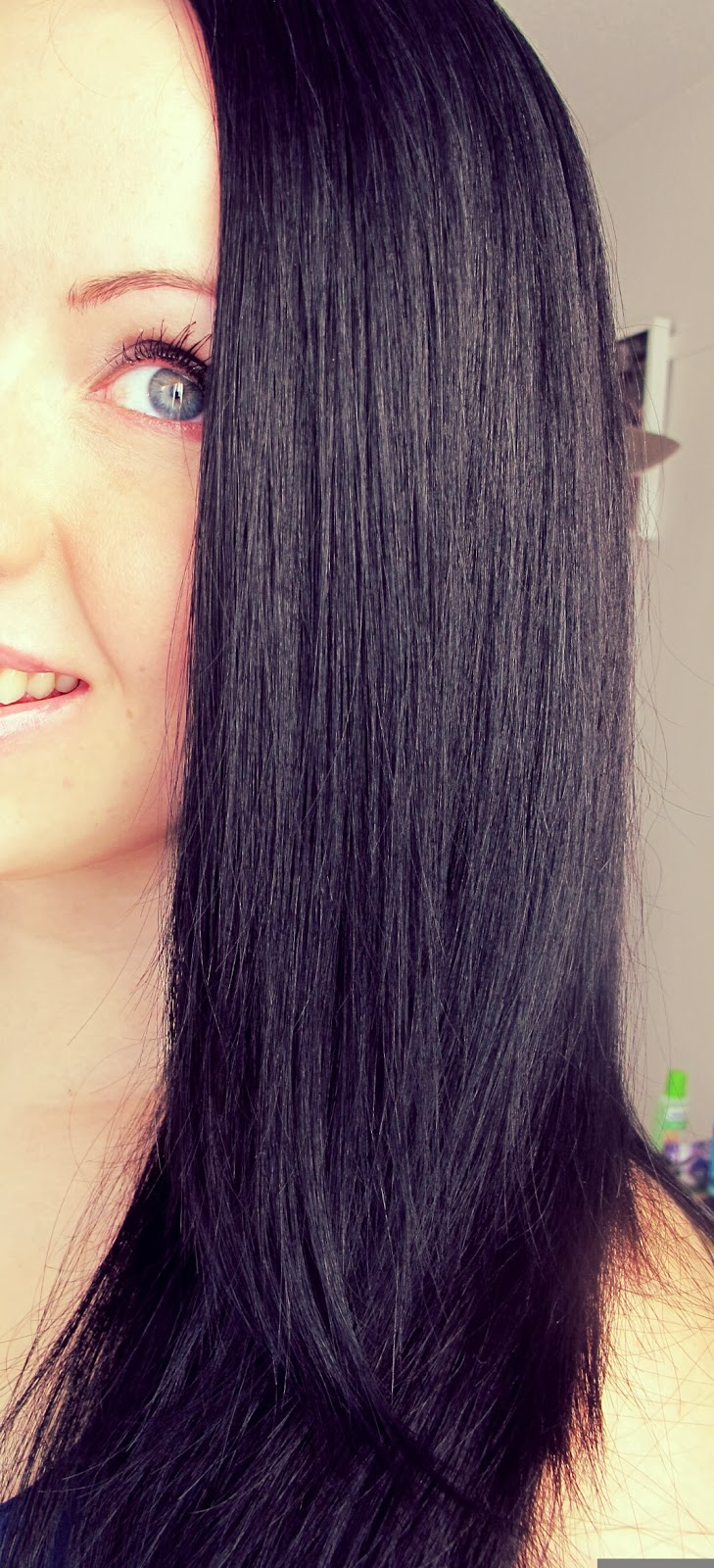 Hiukseni ovat noin sileät, kiiltävät ja muuten vaan myös ihanan pehmeän tuntuiset heti pelkän föönauksen jälkeen ilman, että olen suoristellut niitä raudoilla tai föönatessa harjaillut niitä suoremmiksi. Kunhan huidoin föönin suuttimella päähäni päin ilman minkäännäköistä takkujenselvittäjää ja lopputulos oli tuo!