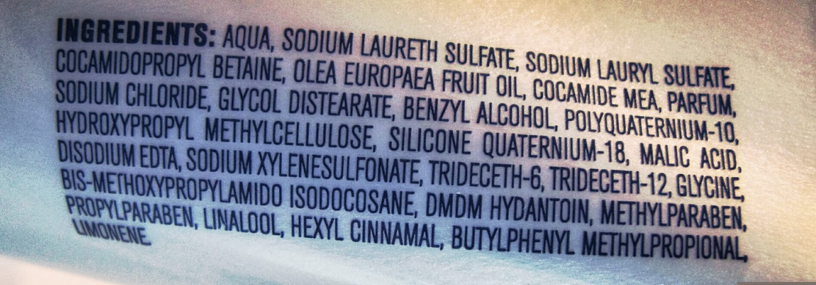 Frizz-Ease Hydrating Shampoo on sisällöltään melko perusshampoo, jossa on käytetty varsinaisten pesevien aineosien lisäksi myös hiuksia pehmittävää oliiviöljyä.