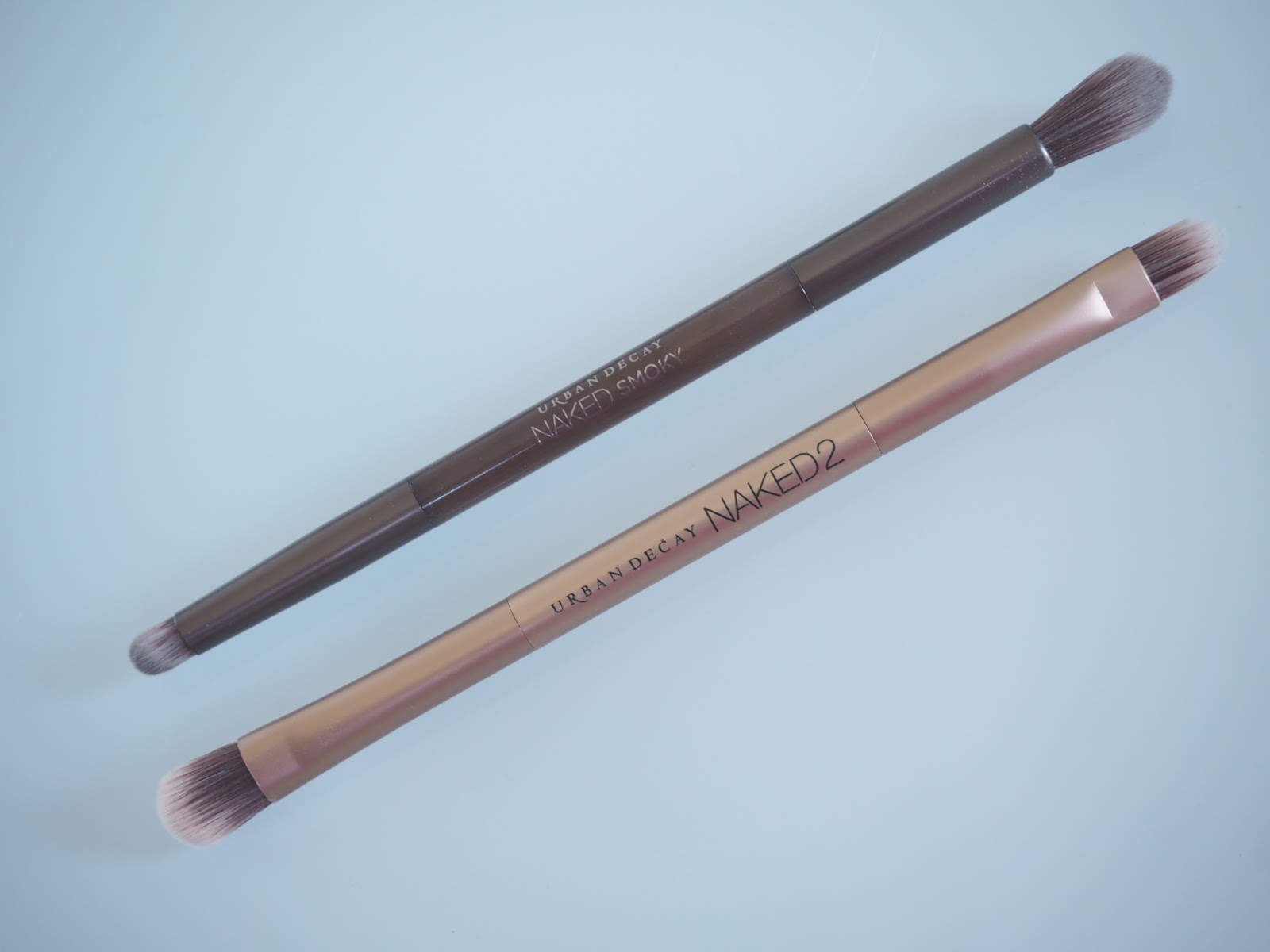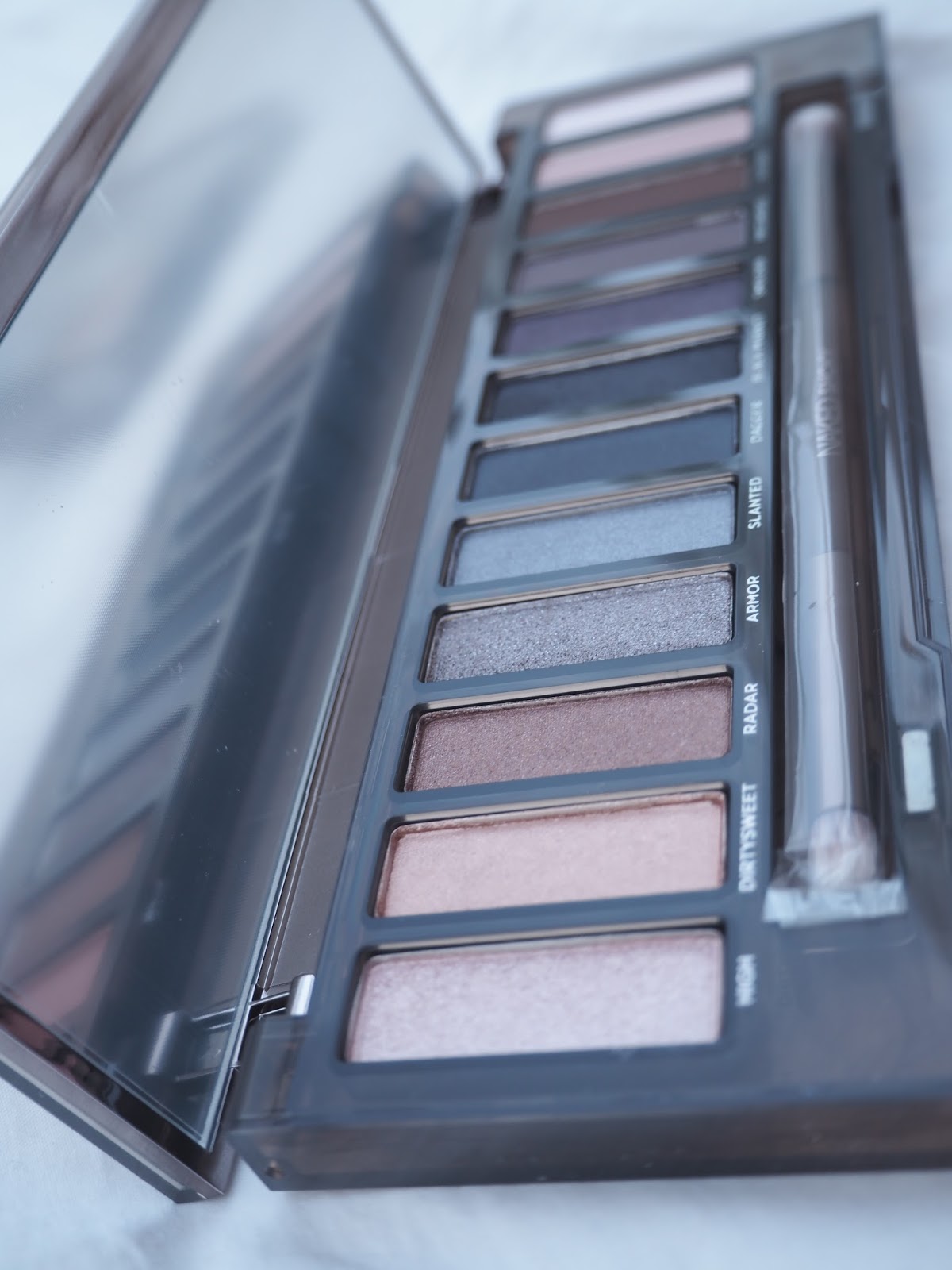 Naked Smoky -palettiin on laitettu nimenomaan smoky-meikille sopiva kaksipäinen sivellin, jonka pienemmällä töppöpäällä on helppoa lisätä voimakkaampia sävyjä ja lörpömmällä päällä puolestaan häivytellä ja tehdä sitä pehmeämpää jälkeä. Pidin siveltimestä paljon, joten näissä kuvissa tehtyyn meikkiin on kokeilun vuoksi käytetty ihan vaan pelkästään paletin mukana tullutta sivellintä, joka ajoi asiansa loistavasti.