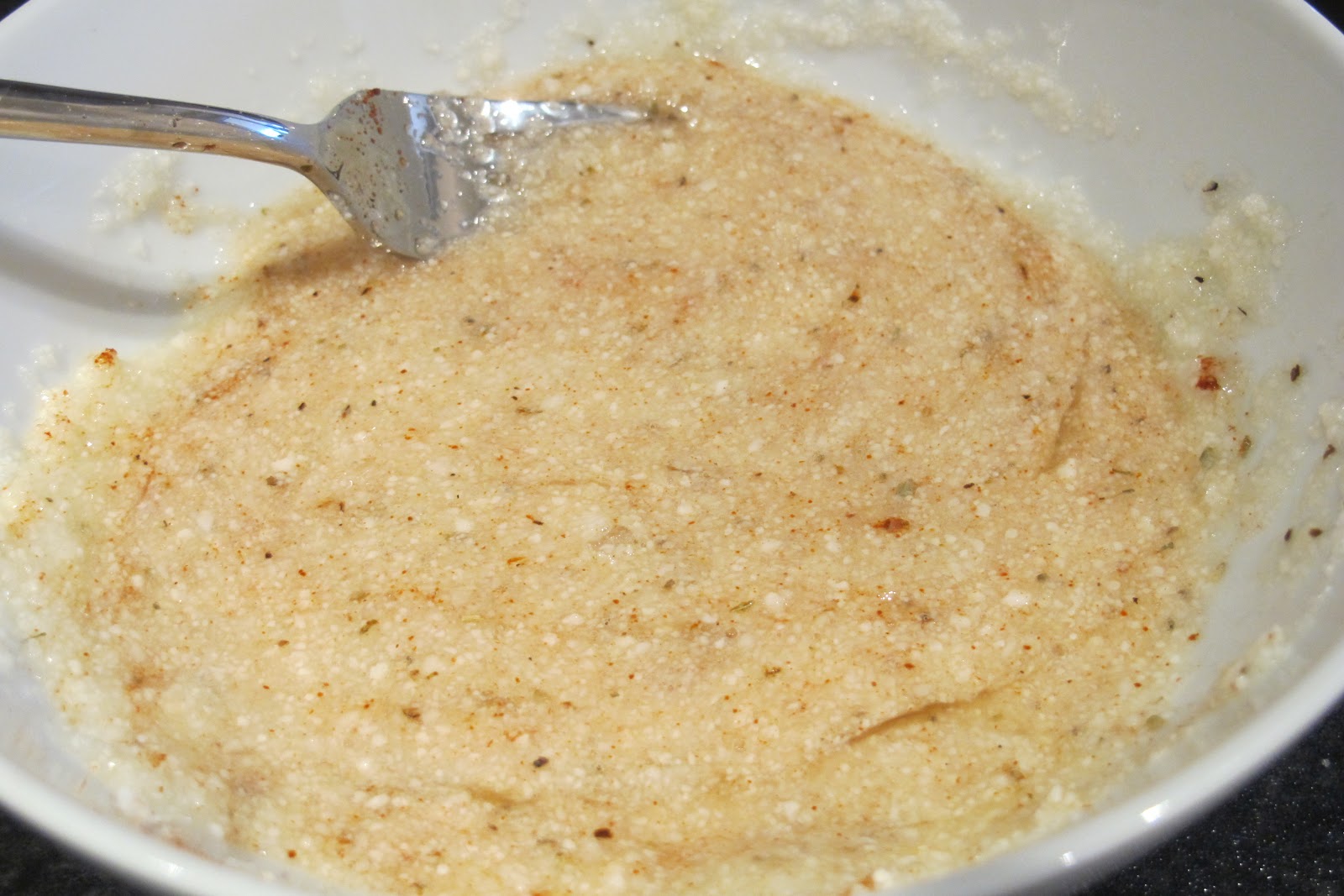 Kun tämän ”riisin” sitten pehmentää esimerkiksi mikrossa muutaman minuutin lämmittelemällä ja seoksen maustaa, syntyy aivan uskottavaa ”riisiä”.