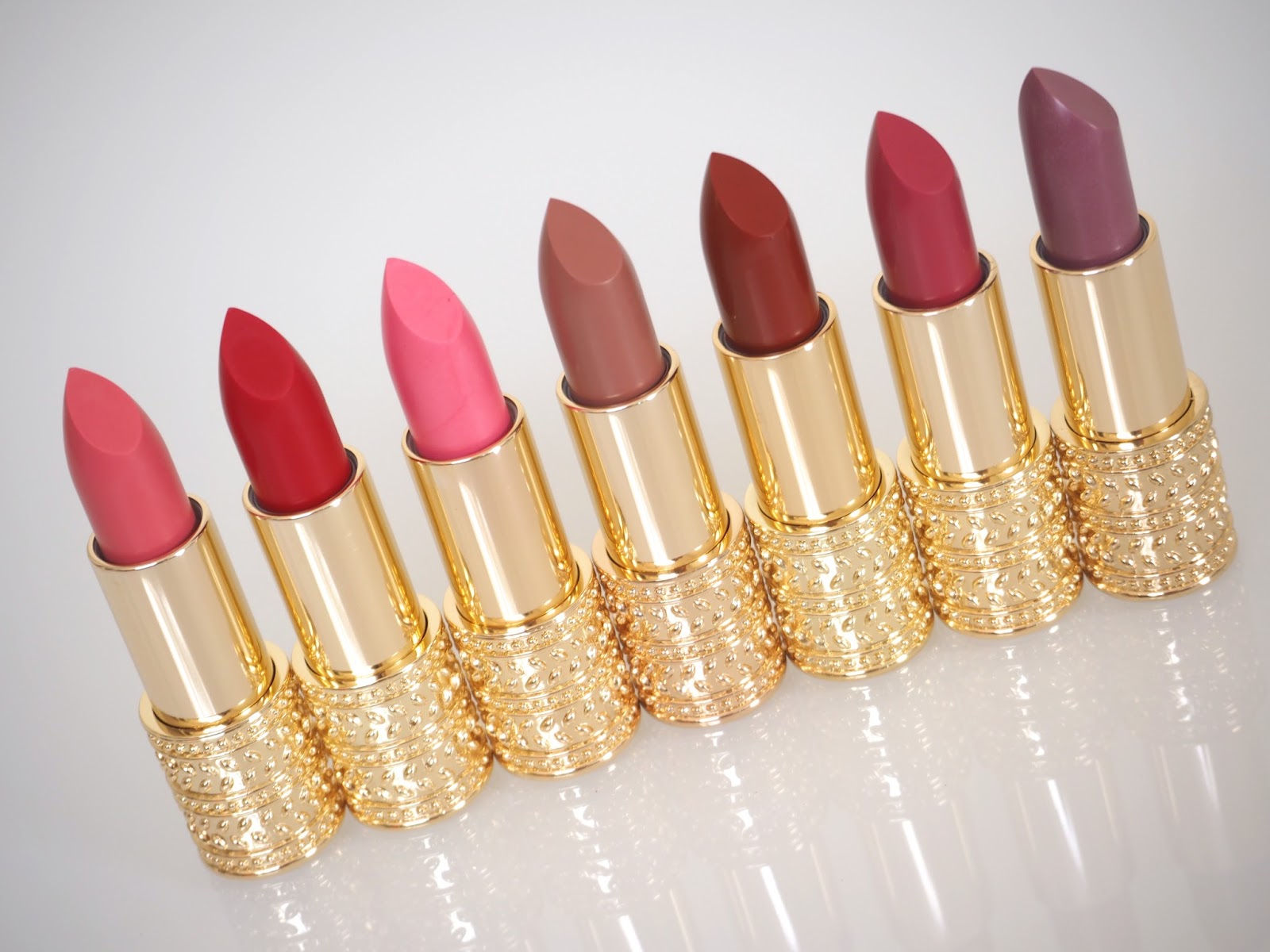 Oikein kauniita pakkauksia, ja pari sävyä vaikuttavat omaan värimaailmaan sopivilta. Moinen huulipuna olisi tulevan juhlakauden alkaessa sopiva lisä pikkulaukkuun. Täytyypä pistää harkintaan. 🙂