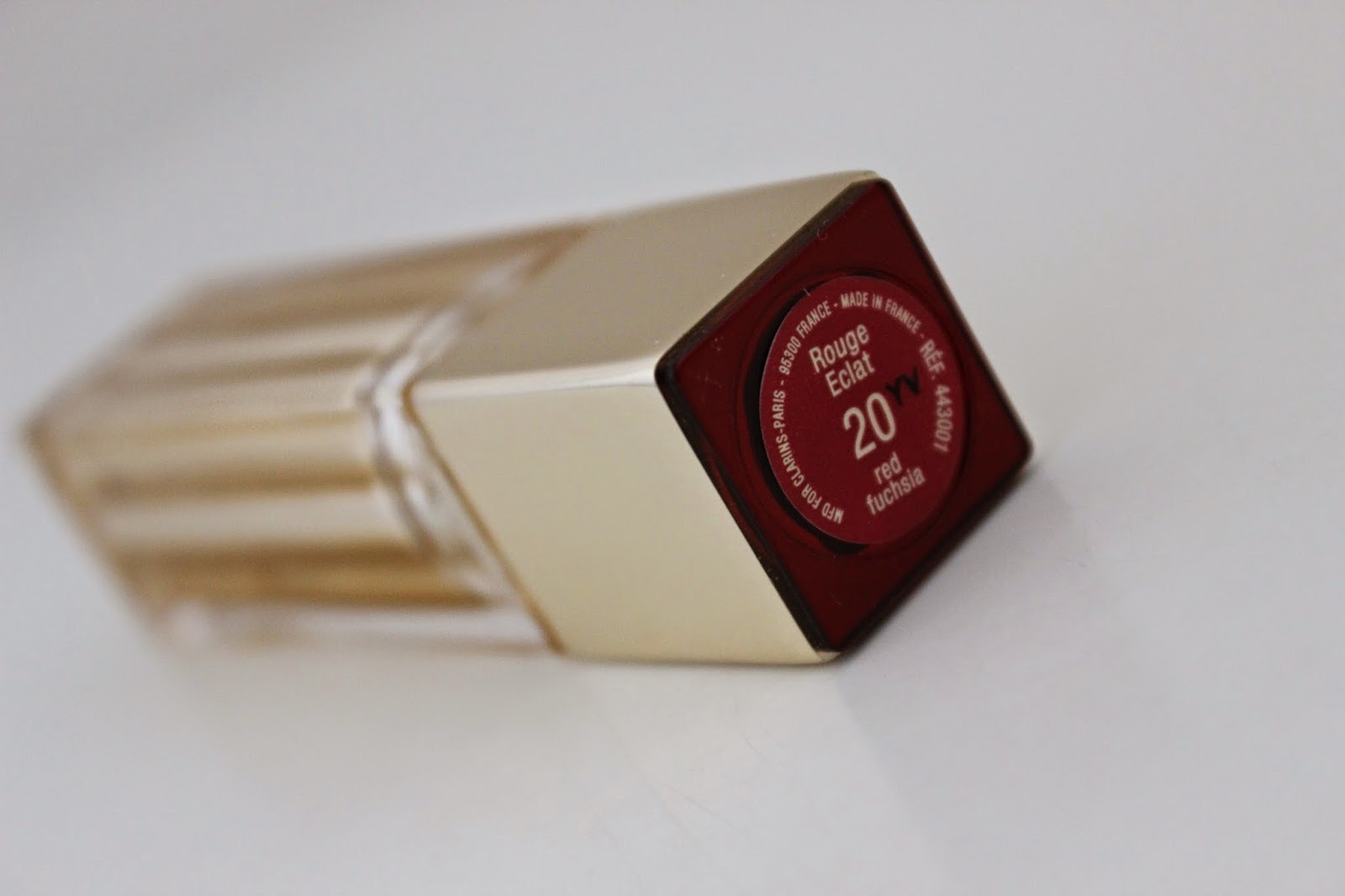 Sain kokeiltavakseni blogin kautta Clarinsin syksyn 2014 Lady Like -nimellä kulkevaan lookkiin kuuluvan Rouge Eclat -huulipunan sen punaisessa sävyssä 20 Red Fuchsia.
