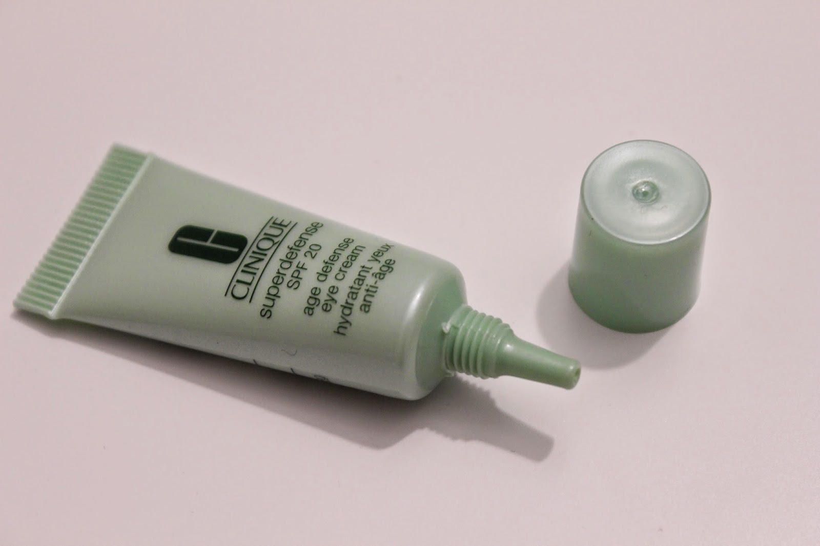 Sain itselleni omakseni Cliniquen Superdefence -linjan SPF 20 Age Defence Eye Creamin näytekoon ollessani alkuvuodesta Sensaisti-blogin Marin järjestämissä iltamissa. Näppärän kokoinen tuote on juuri omiaan kuljetettavaksi kesälaukuissa mukana ja ollutkin minulla jo jonkun aikaa joka aamuisessa käytössä.