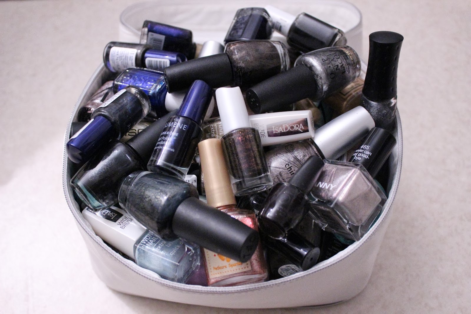 Itselläni on vain muutamia kynsilakkoja (kävin laskemassa niin 17 lakkaa), joista saa panna varmaan 9kpl roskiin (kun ovat sellaisia mulle outoja värejä, saatuja, joita ei tuu käytettyä).
