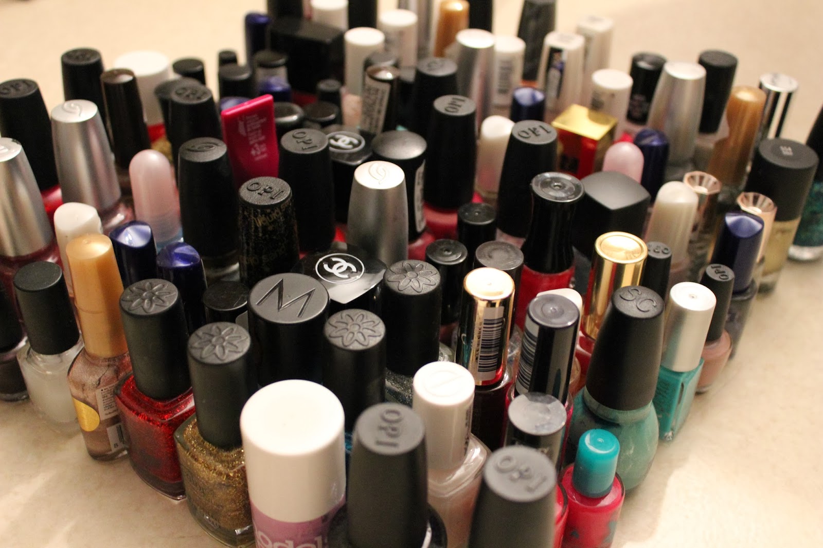 Minulla on n. 350 kynsilakkaa. Olen ostanut niistä vuosien aikana ehkä neljäkymmentä ja muut ovat kaikki päätyneet minulle töiden, blogin tai tuliaisina äitini kautta. Kynsilakkoja on ahdistavan paljon ja viimeisen vuoden aikana kynsilakkojen paljous on ilmennyt niin, etten ole enää jaksanut laittaa kynsiäni.