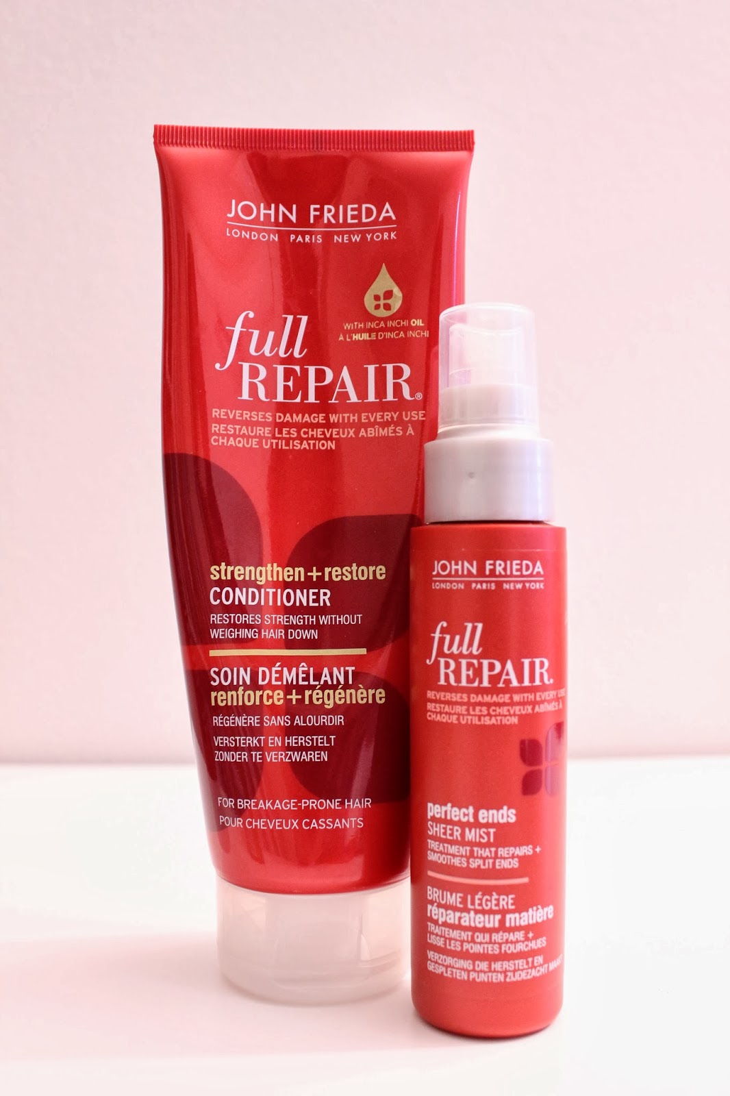 Olen saanut blogini kautta kokeiluuni John Friedan kehuttuja Full Repair -tuotesarjan tuotteita ja voi jestas, kuinka helppoa näillä on saada silkkisen sileät hiukset!