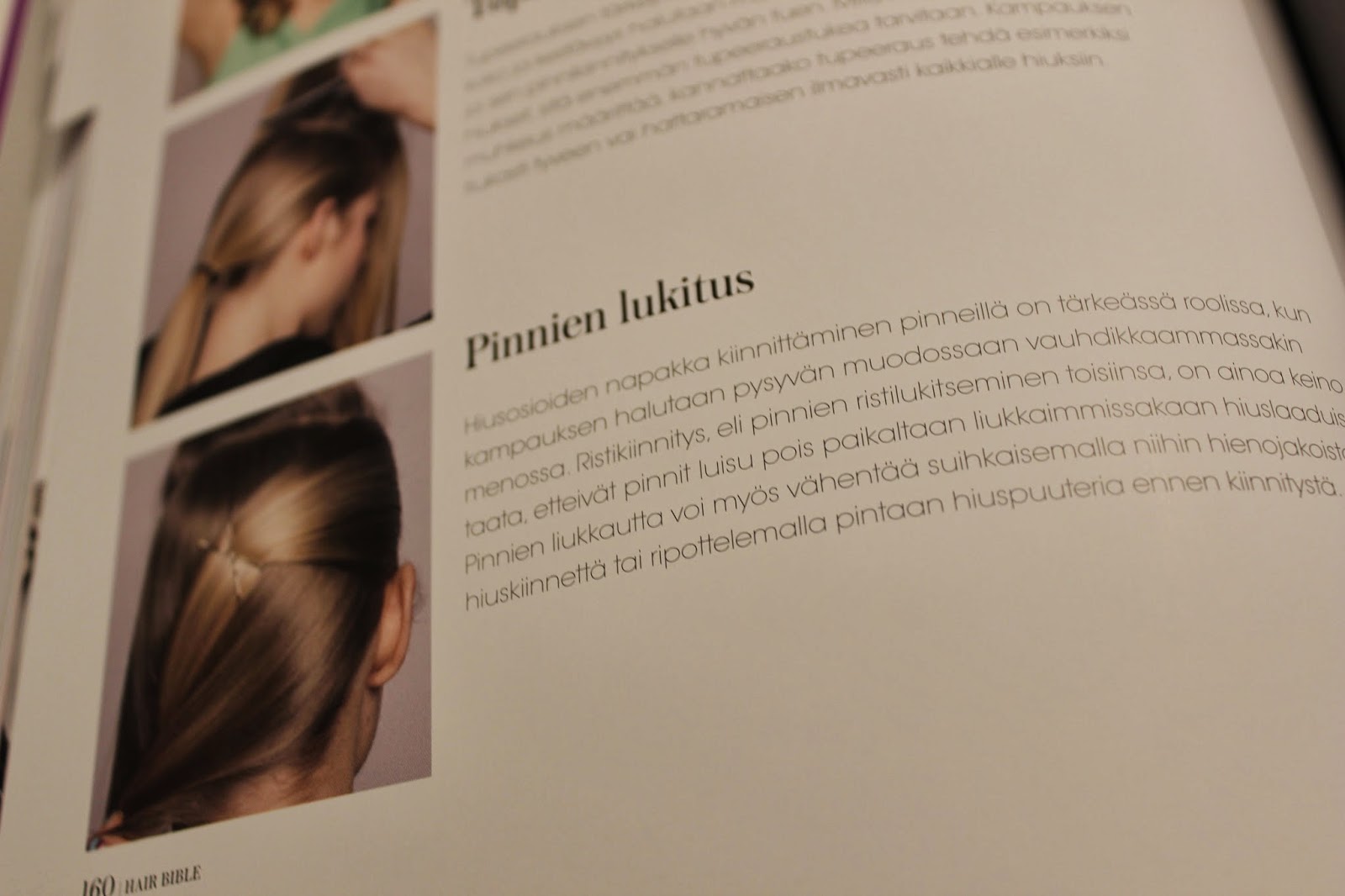 Ennen kaikkea kirja kuitenkin toimii minulla ainakin suunnattomana inspiraationa, sillä sitä selaillessa tekee vaan mielettömästi mieli tarttua harjaan, kampaan, hiuspinneihin, ponnareihin ja hiuslaitteisiin ihan vaan kokeillakseen kirjan oppeja.