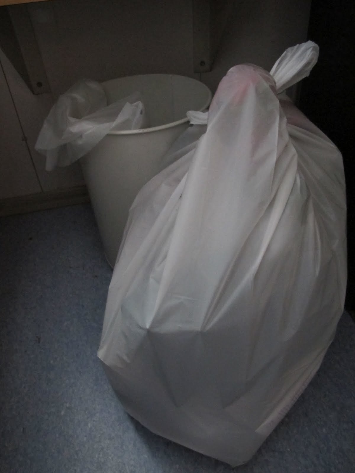 Vien illalla myös työvaatteeni pyykkiin. Minun ei tarvitse itse pestä niitä vaan jätän ne vaan pyykkipussissa pyykikärryyn, josta ne viedään pesulaan pestäviksi ja palautetaan nimelläni laivaan.