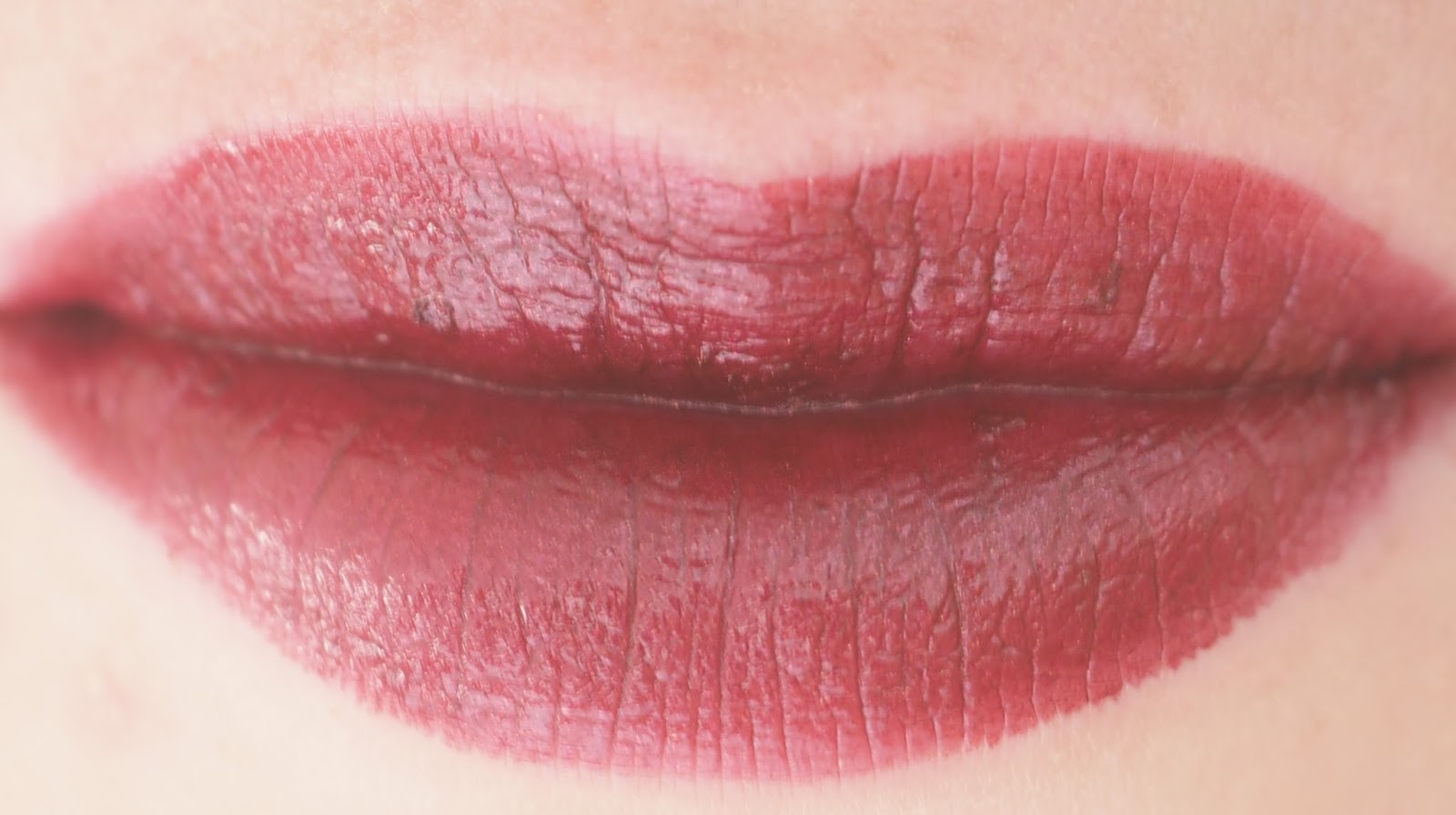 Intensiivinen, mutta melko kiiltävä Cliniquen Chubby Stick Intense sävyssä 08 Grandest Grape tuntui turvallisimmalta vaihtoehdolta aloittaa testaus. Sävyssä oli jotain minulle tuttua herkullisen vadelmaista, mutta se oli silti huomattavasti tummempi ja violettisempi kuin normaalisti käyttämäni punat. Chubby Sticksin kynämäinen muoto auttoi piirtämään tummankin sävyn huulille tarkasti.