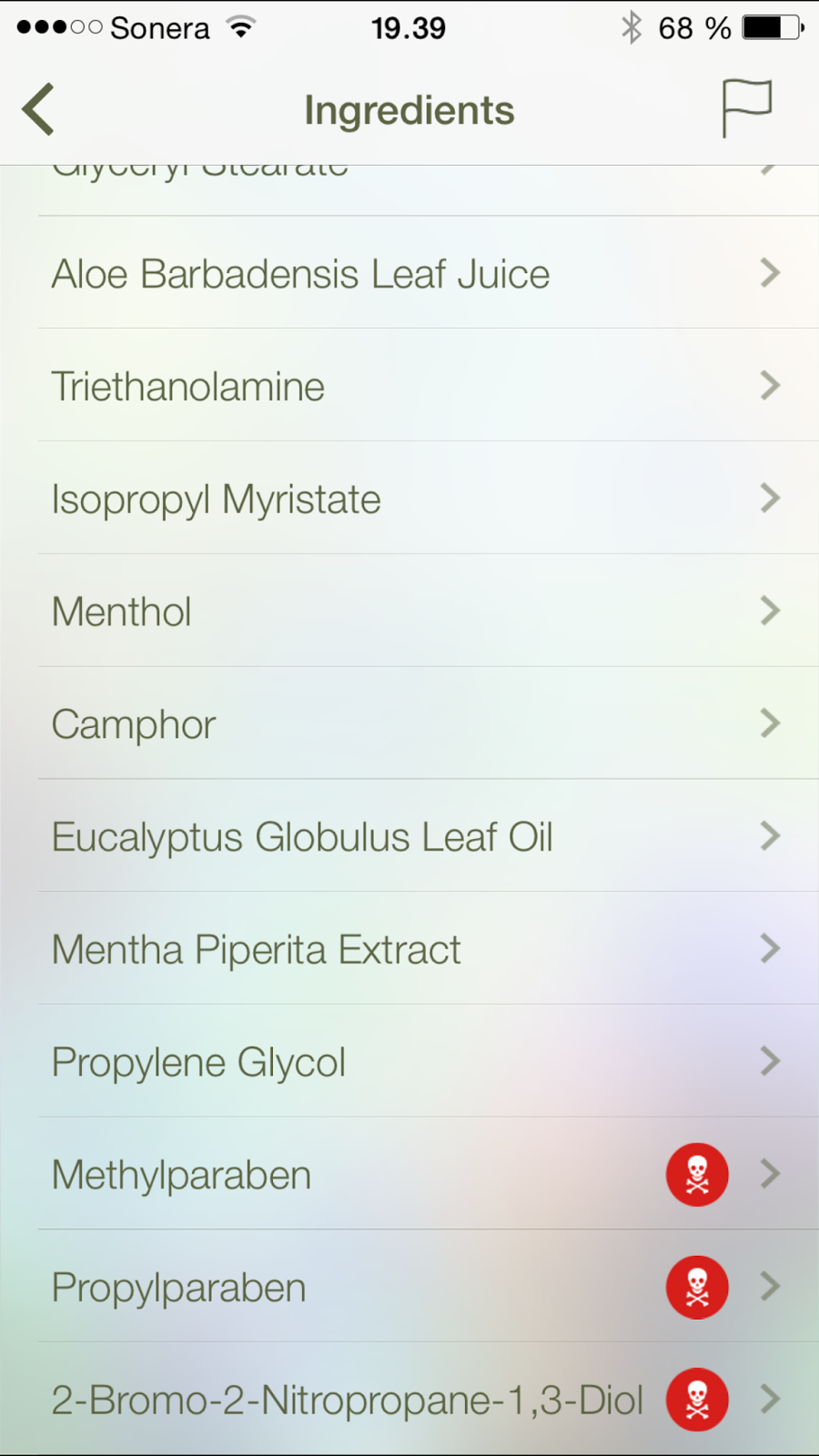 Ymmärrän tuon (ja vastaavien) applikaatioiden käytön, kun halutaan välttää tiettyjä raaka-aineita. Parabeeneja tai mentholia… Mistä tahansa voi periaatteessa saada allergisen reaktion, jos elimistö altistuu kylliksi. Arveluttaa kyllä yksioikoinen tiettyjen aineiden leimaaminen huonoiksi.