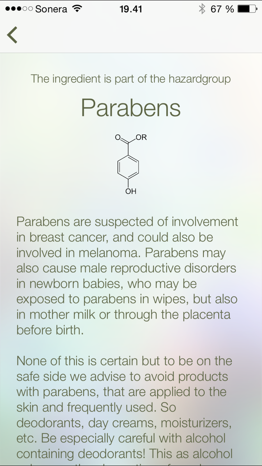 Sovellus on siis hyvä varoittaja niille, jotka OIKEASTI ovat allergisia parabeeneille, mutta ihan järkyttävää pelonlietsontaa niille tavallisille kuluttajille, jotka massahysteria vain nappaa mukaansa. (Eikä allergisuuskaan tee niistä vielä rintasyöpää aiheuttavia myrkkyjä.)