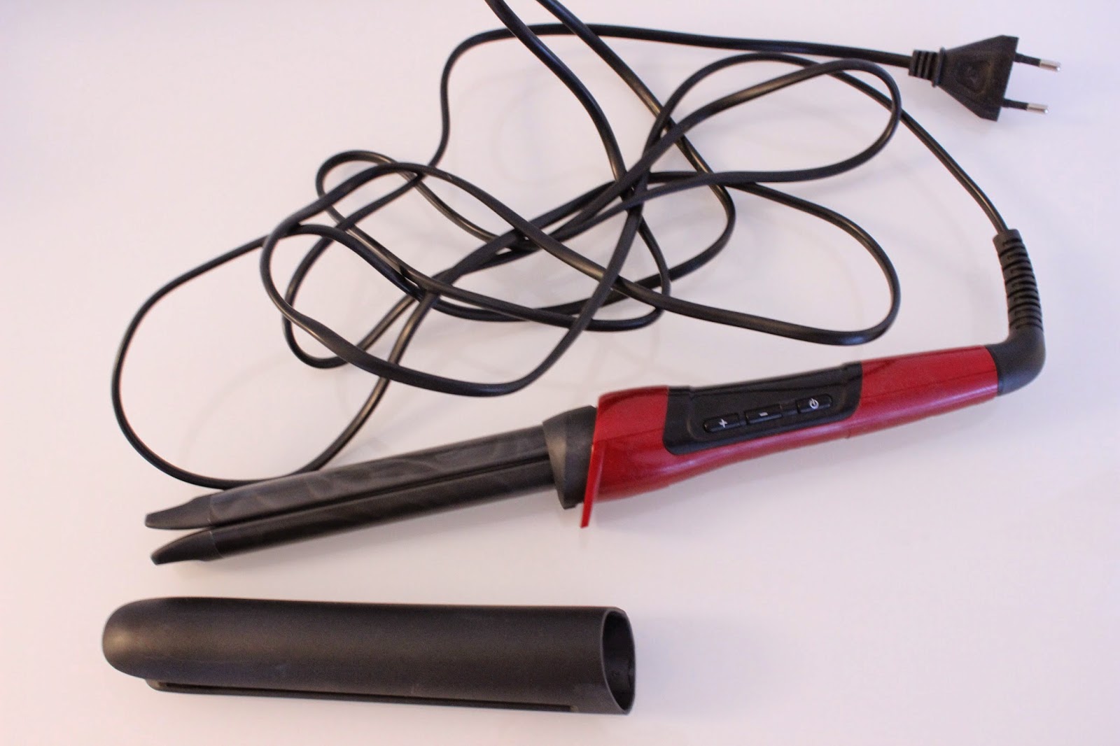Olin ihmetellyt tätä laitetta töissä. Minulla on ollut lyhyet hiukset niin monta vuotta, että olen pudonnut aivan hiustenlaiton maailmasta. Kun otin sen mustan muoviosan pois, ymmärsin jo pikkaisen paremmin koko laitetta. Luulin aluksi, että kiharat täytyy saada aikaiseksi muoviosan ollessa kiinni siinä. Olin vähän pöljä. 😀 Opin sentään tästä laitteesta paljon nippelitietoa, kuten että takuu on 60 kuukautta, mikä on aika paljon enemmän tavalliseen 24 verrattuna. Varmasti siis laadukas. 🙂