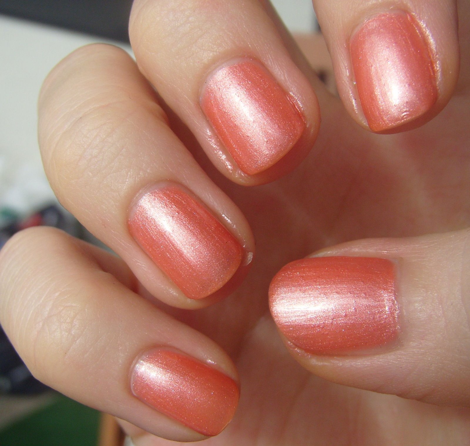 Lakkana on L’orealin JetSet 753, joka lähentelee pian loppuaan. Tämä on yksi tämän hetken projektilakoista, eli niistä lakoista, joita yritän käyttää loppuun ja käytän muita useammin. Sävy on ihana, mutta harmikseni tämä on hieman liian läpikuultava. Mieleni tekisi hankkia joku vähän vahvempi koralli lakka, mutta enpä kyllä taida…
