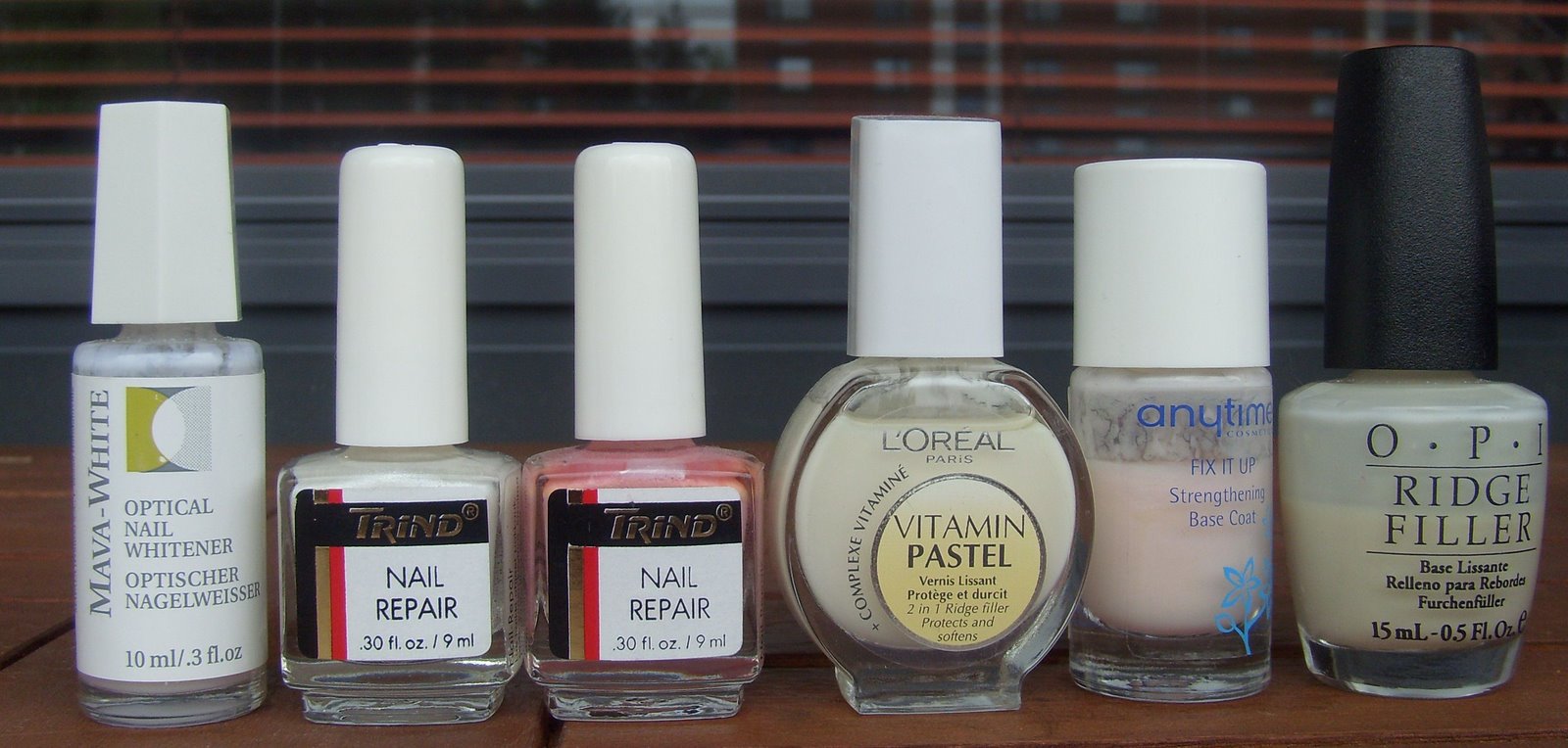 Mavala Mava-White, Trind Nail Repair Pure Pearl valkoinen, Trind Nail Repair Pure Pearl roosa, L’oreal Vitamin Pastel 2 in 1 Ridge Filler, Anytime Fix It Up