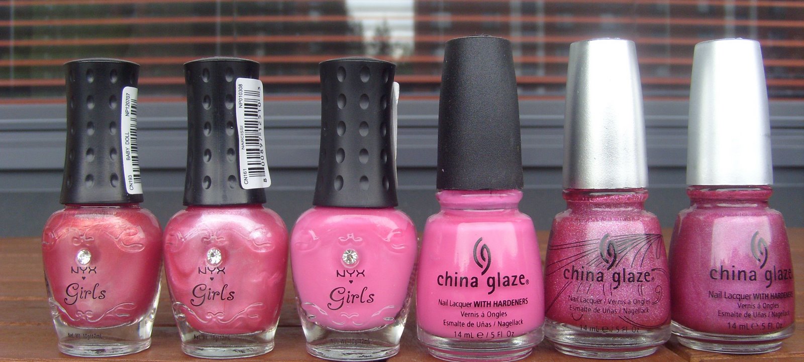 NYX Girls Baby Doll, NYX Girls Narcissi, NYX Girls Pinky, China Glaze Rich and Famous, China Glaze Tickle My Triangle ja China Glaze QT.