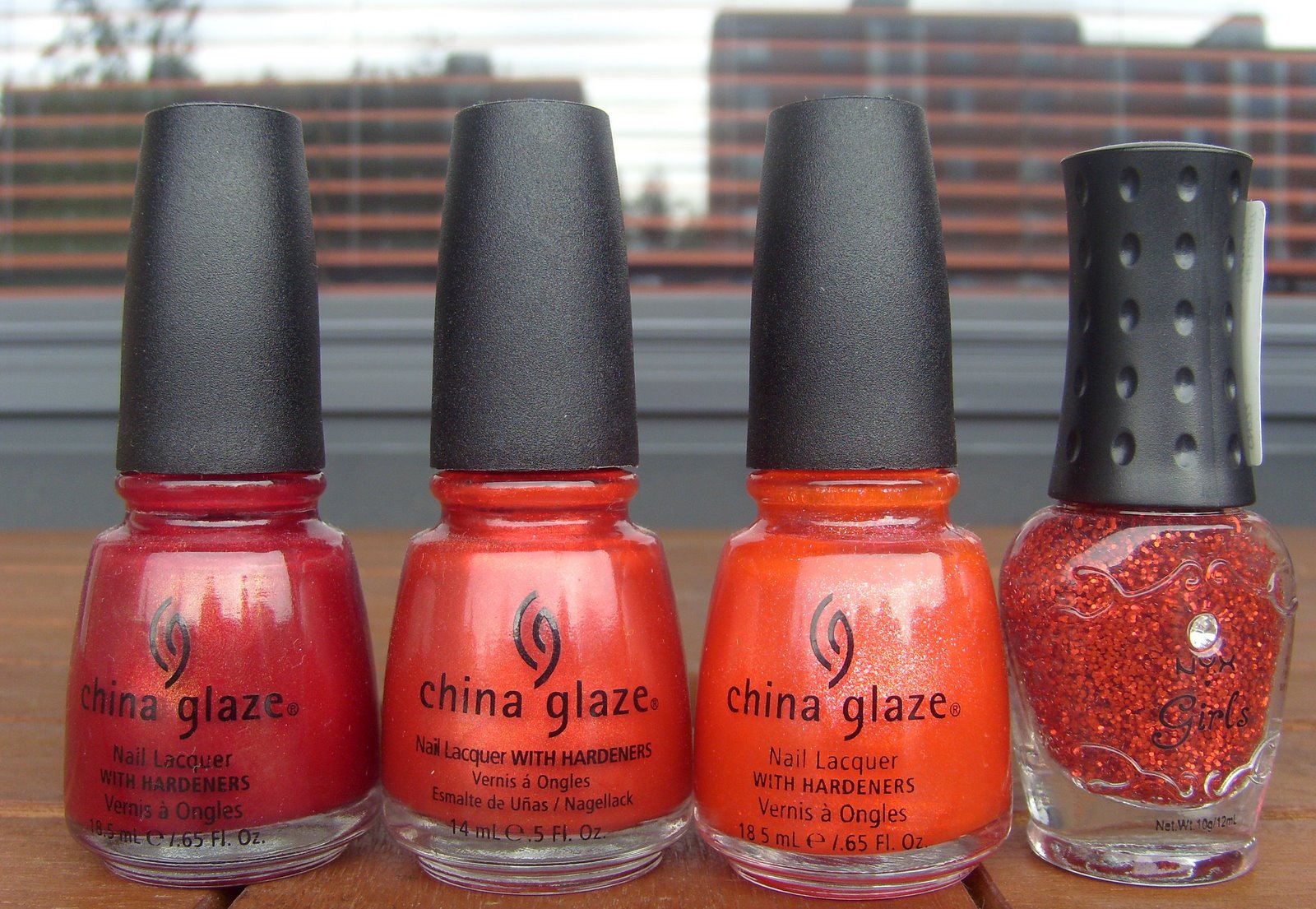 China Glaze Visions Of Grandeur, China Glaze Red Stallion, China Glaze Sexy ja NYX Girls CN222.